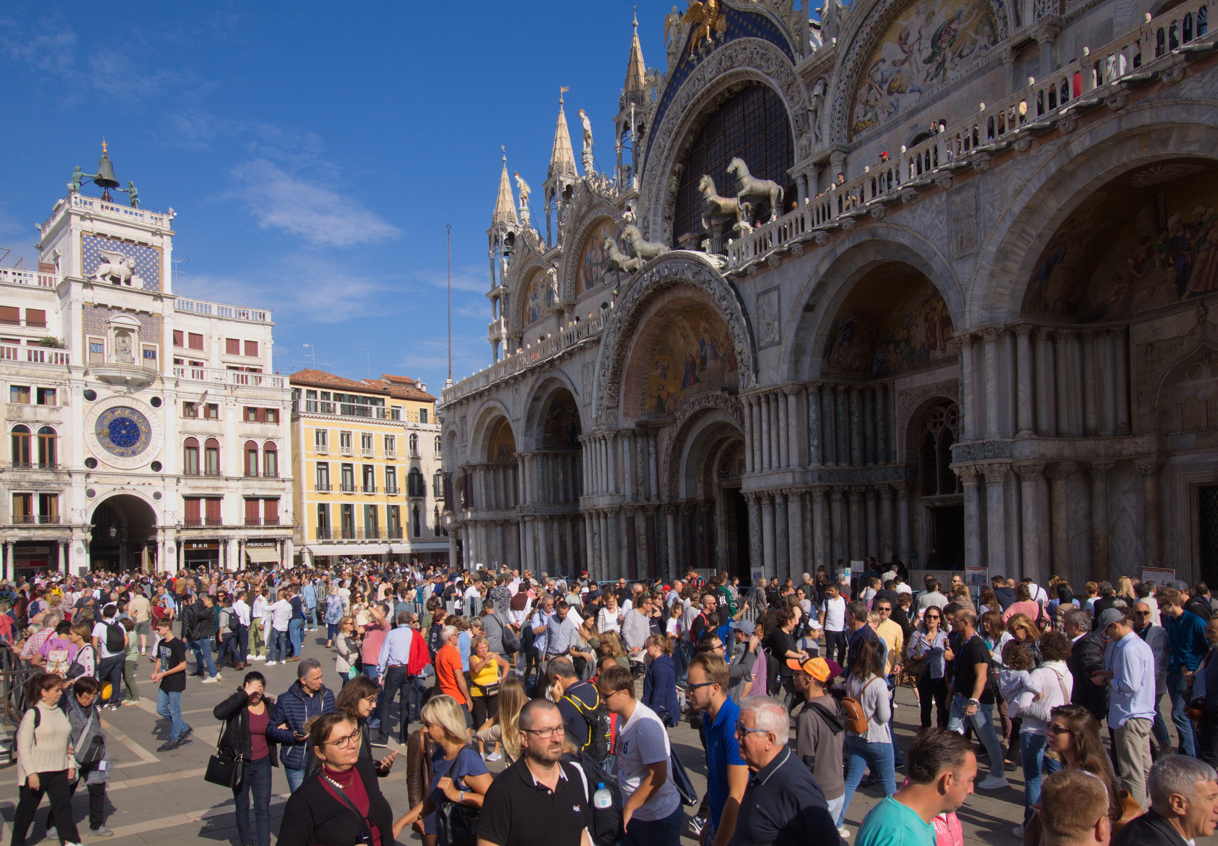 Heute war Venedig am Programm. Wir hatten nur etwa 30 km mit dem Auto zu fahren. Nach dem Einparken fuhren wir mit dem Vaporetto zum Markusplatz, allerdings nicht über Canal Grande sondern zwischen dem Zentrum und der Insel Guidecca. Dabei haben wir auch gesehen, dass im Hafen mehrere Kreuzfahrtschiffe stehen.