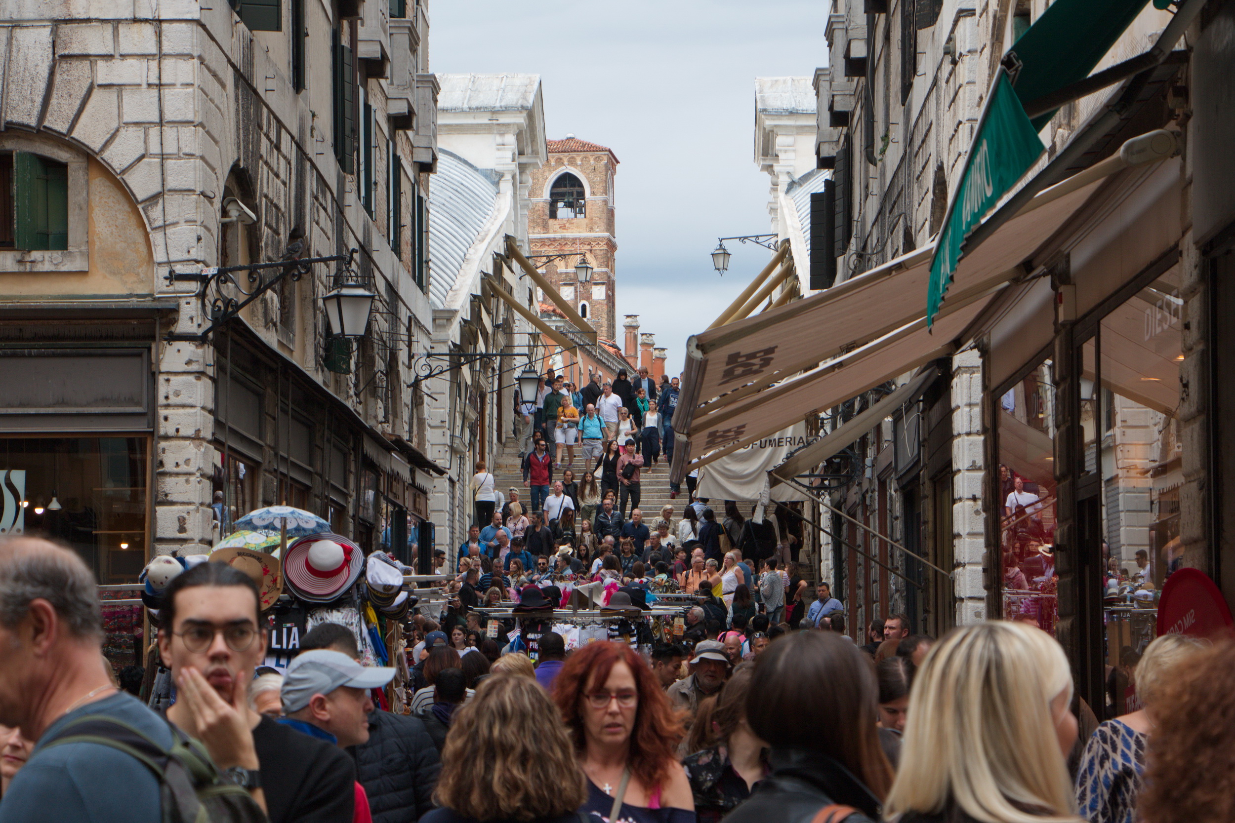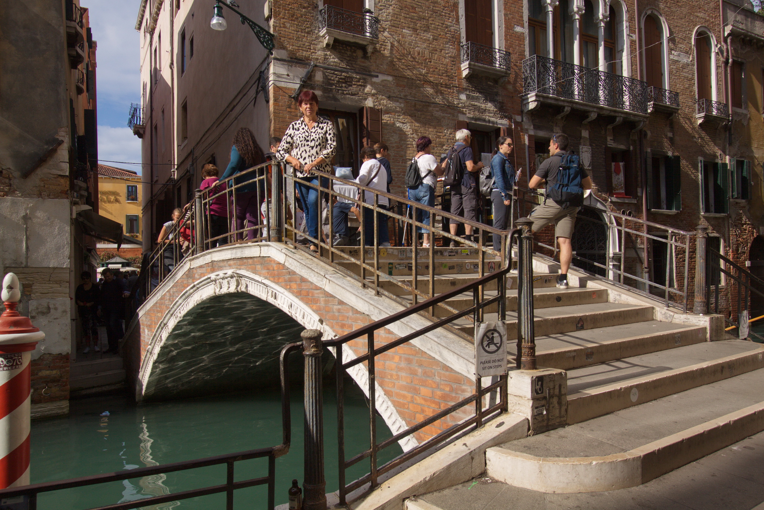 Unten erwartete uns ein Schock. So viele Menschen haben wir hier noch nie gesehen. Wahrscheinlich legte gerade ein Kreuzfahrtschiff an. Wir gingen schnell weg durch die wunderschönen Gassen und über viele Brücken.