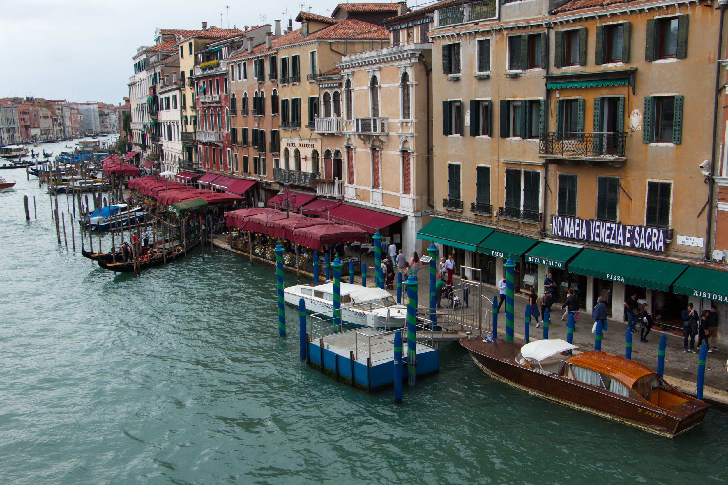 Nach dem Essen schlenderten wir durch die Stadt bis zur Rialtobrücke. Da waren wir auch nicht allein. Eine Touristin hat uns (weiß nicht warum) für Einheimische gehalten und fragte, ob wir nicht ein nur ein bisschen ruhigeres Restaurant kennen. Ha ha ha!