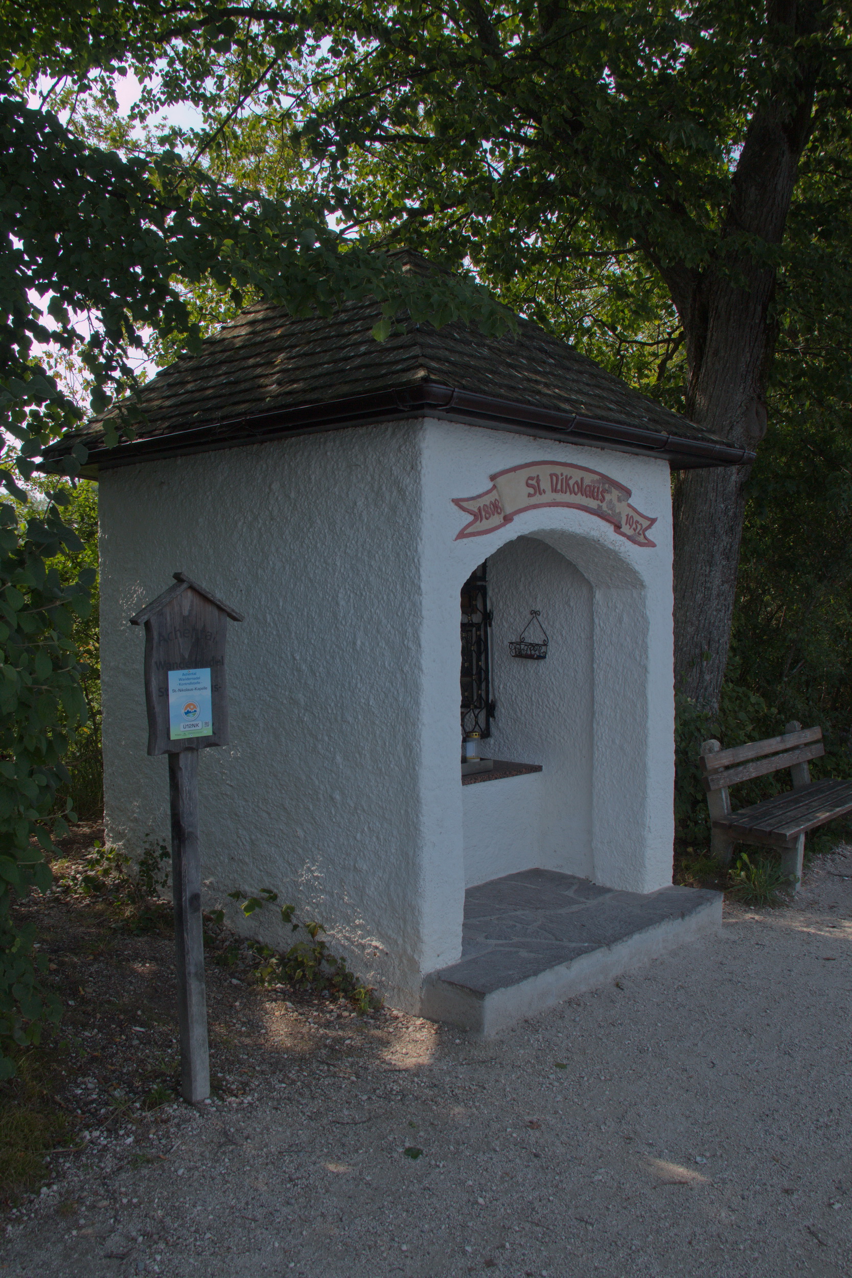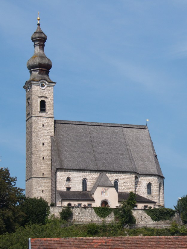 Um die ziemlich langweilige Fahrt über A21, A1 und ab der Grenze über A8 etwas schöner zu machen, haben wir kurz nach dem Grenzübertritt eine Pause in Anger eingelegt. Ich habe dort nämlich eine schöne Kirche gesehen, die ich fotografieren wollte. Auch die Häuser mit Sonnenkolektoren haben mir gut gefallen.