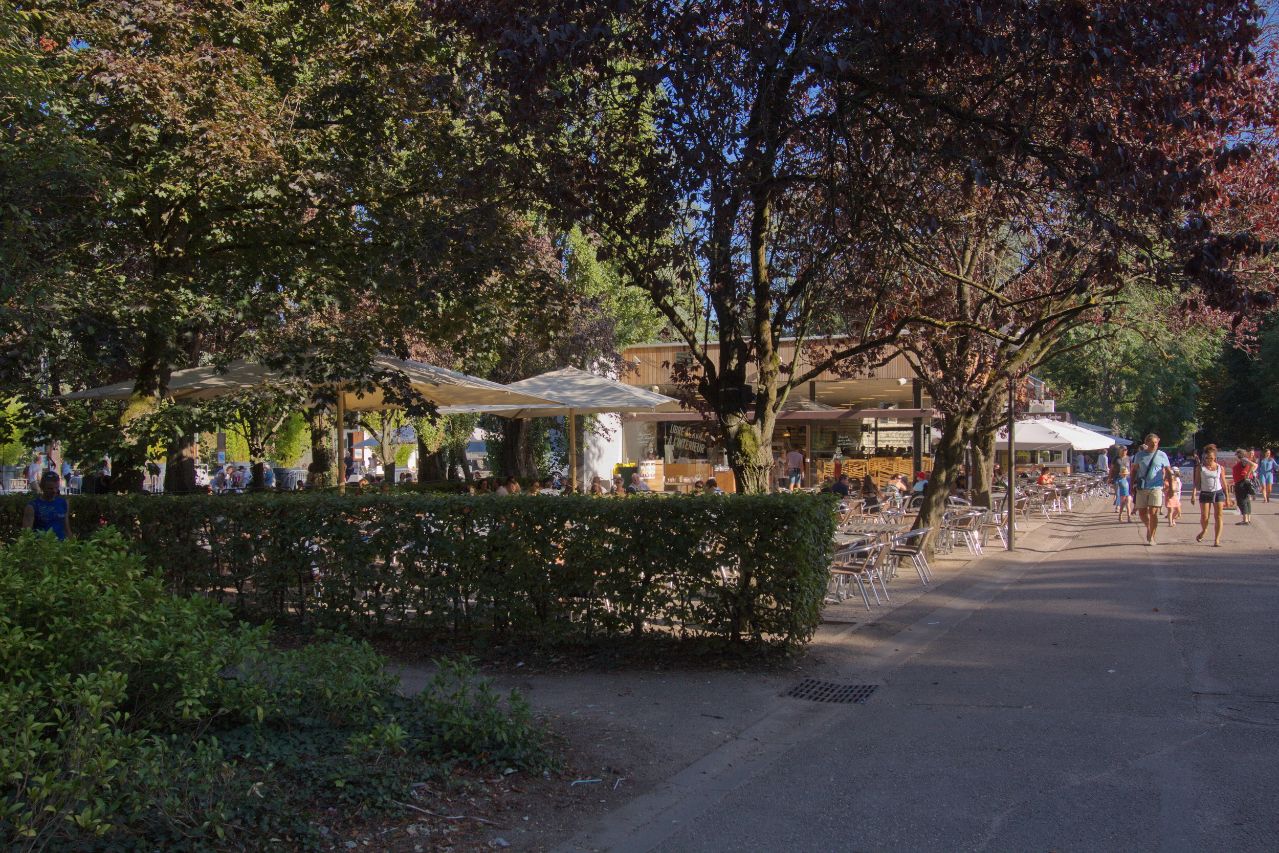 Erst im Parc de la Pepiniere haben wir in einem Selbstbedienungsrestaurant Salat Nicoise bekommen und so konnten wir mindenstens den größten Hunger stillen. Der Park selbst ist groß und schön, mit einem Springbrunnen und vielen Bäumen.