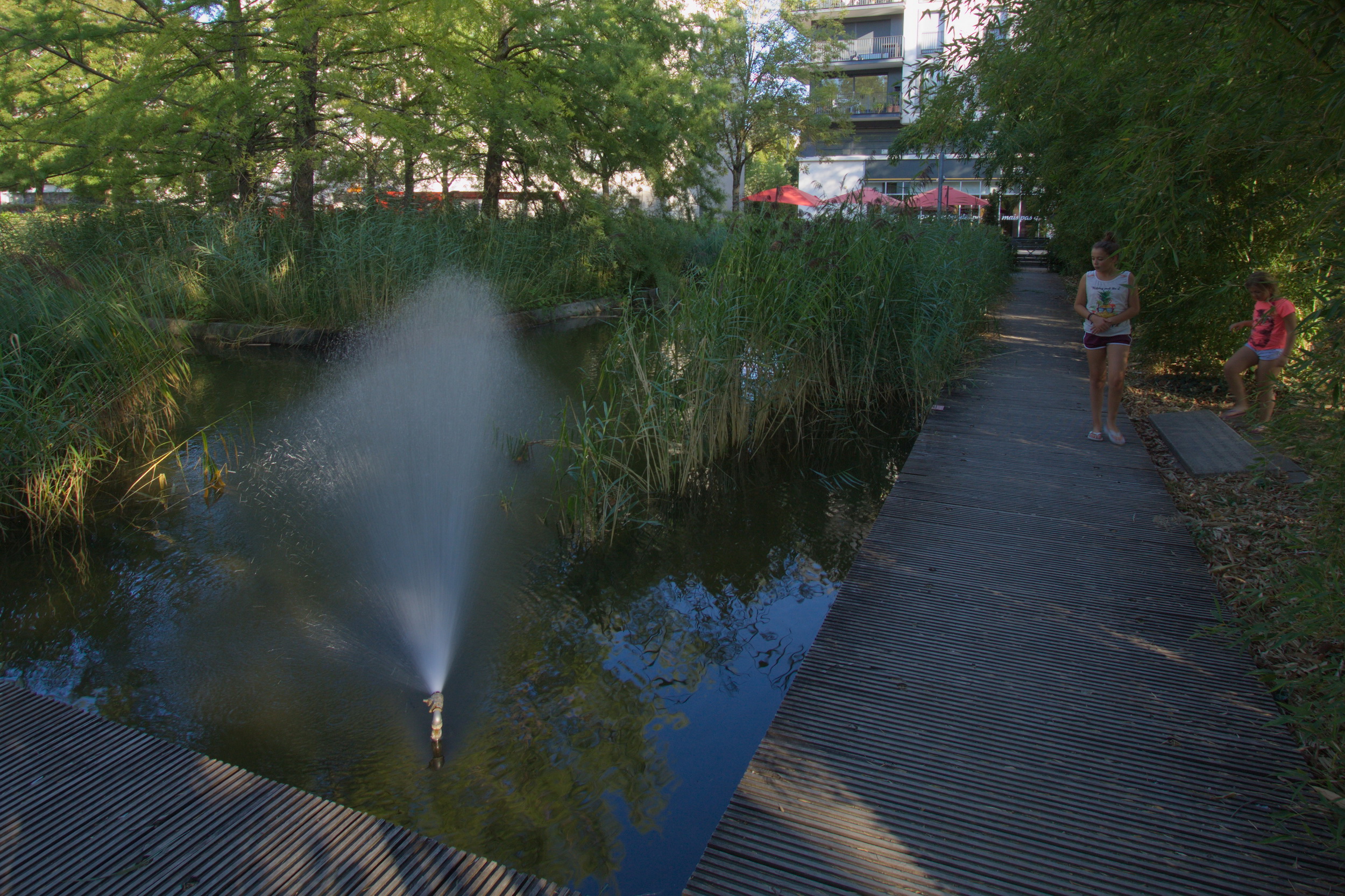 Zum Schluß gingen wir noch gegenüber dem Hotel über die Brücke in den Park Jardin d’Eau mit fünf kleinen Teichen um sich etwas zu entspannen und dann über die nächste Brücke ins Hotel.