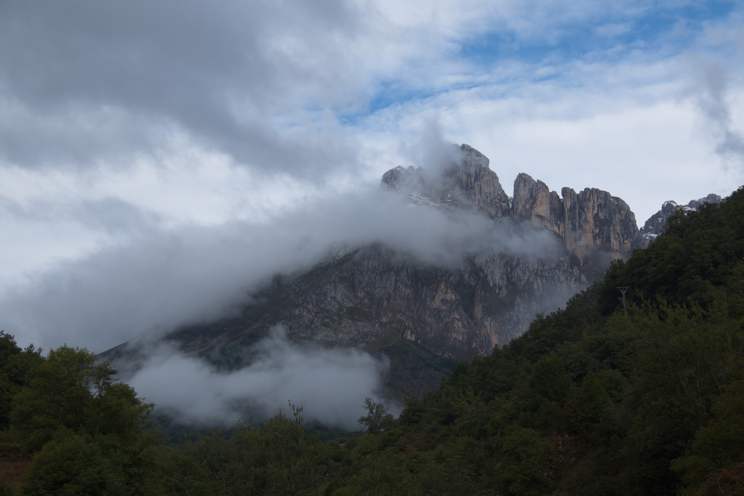 Der Regen hat glücklicherweise gestern am Abend aufgehört. Die Wolken verhüllten aber noch immer die Gipfel und so hatte es keinen Sinn mit der Seilbahn von Fuente De nach oben zu fahren. Wir wählten lieber einen Rundwanderweg Nr. 26 Espinama – Pido – Las Ilces – Espinama. Pido ist ein Bergdorf gleich neben der Straße nach Fuente De. Der Wanderweg ist gut ausgeschildert, führte aber ein bisschen anders als auf der Karte von Mapy.cz, die wir auf dem Handy verfolgten.