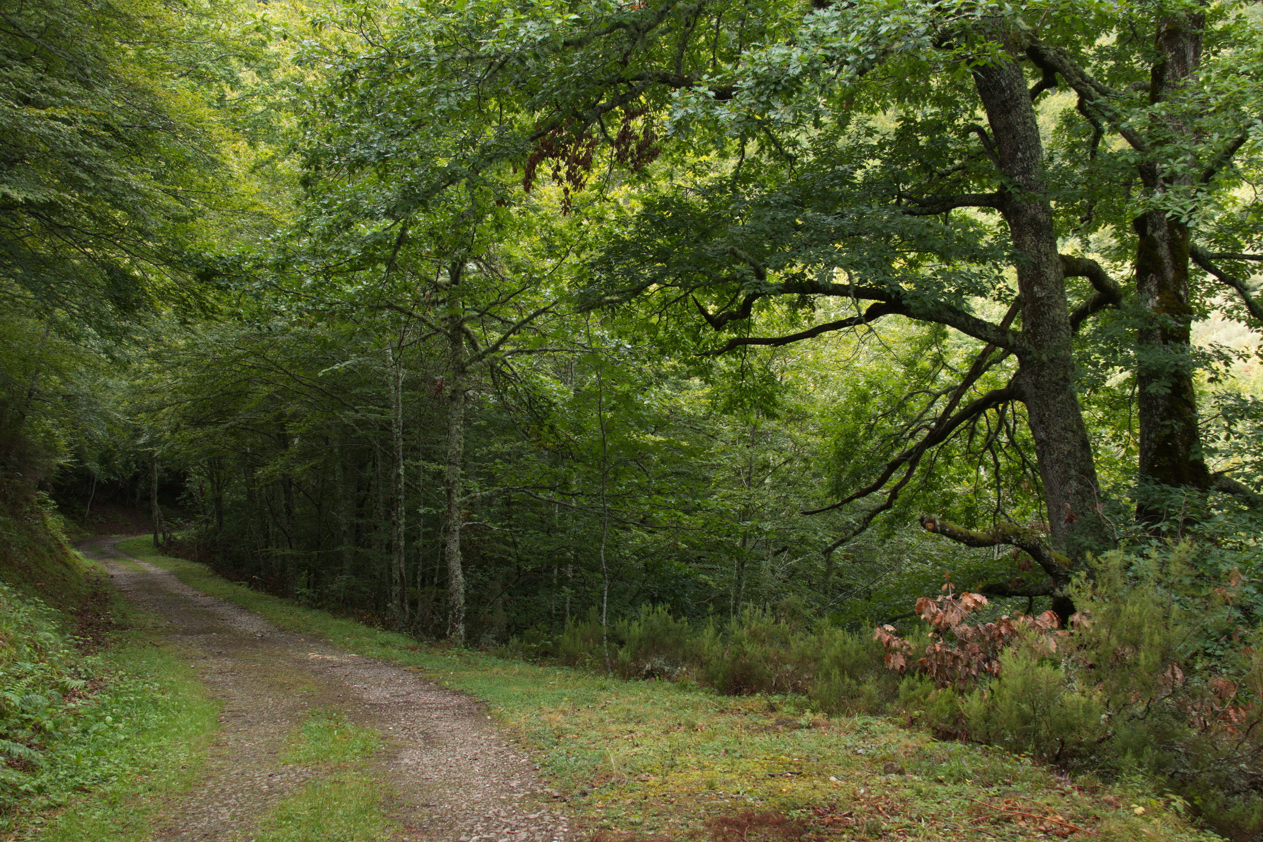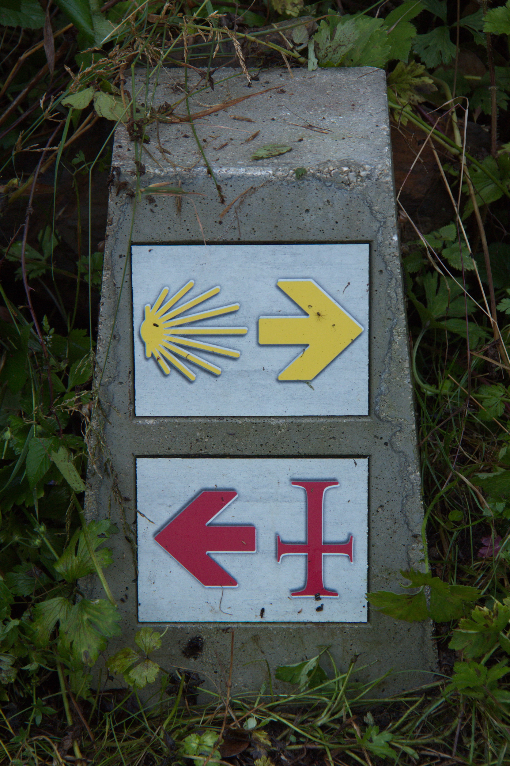 In den Picos de Europa regnet es sehr viel. Die Bäume waren mit Flechten bewachsen und wir sahen viele große schwarze Nacktschnecken. Die Strecke war leicht, führte meistens auf einer Forststrasse. Unsere Wege sind oft Teile des Jacobsweges nach Santiago de Compostela, der mit der gelben Muschel gekennzeichnet ist.