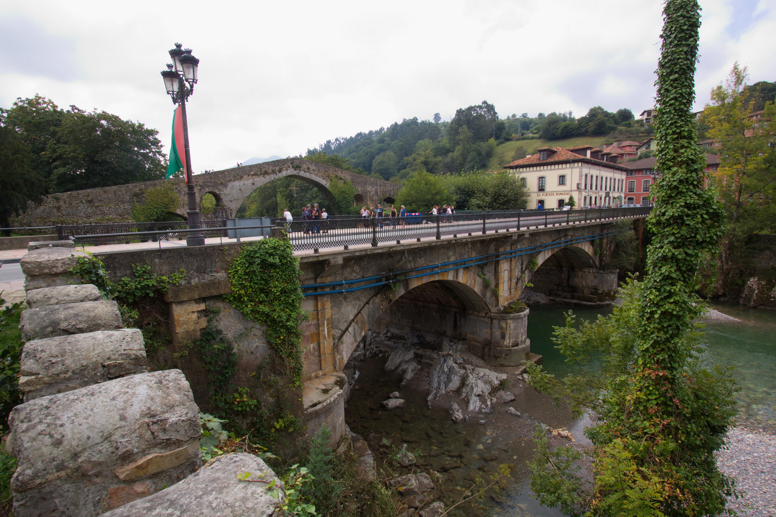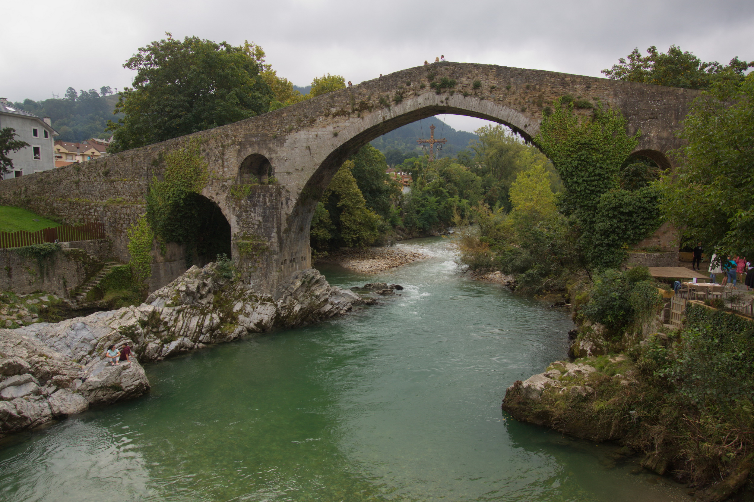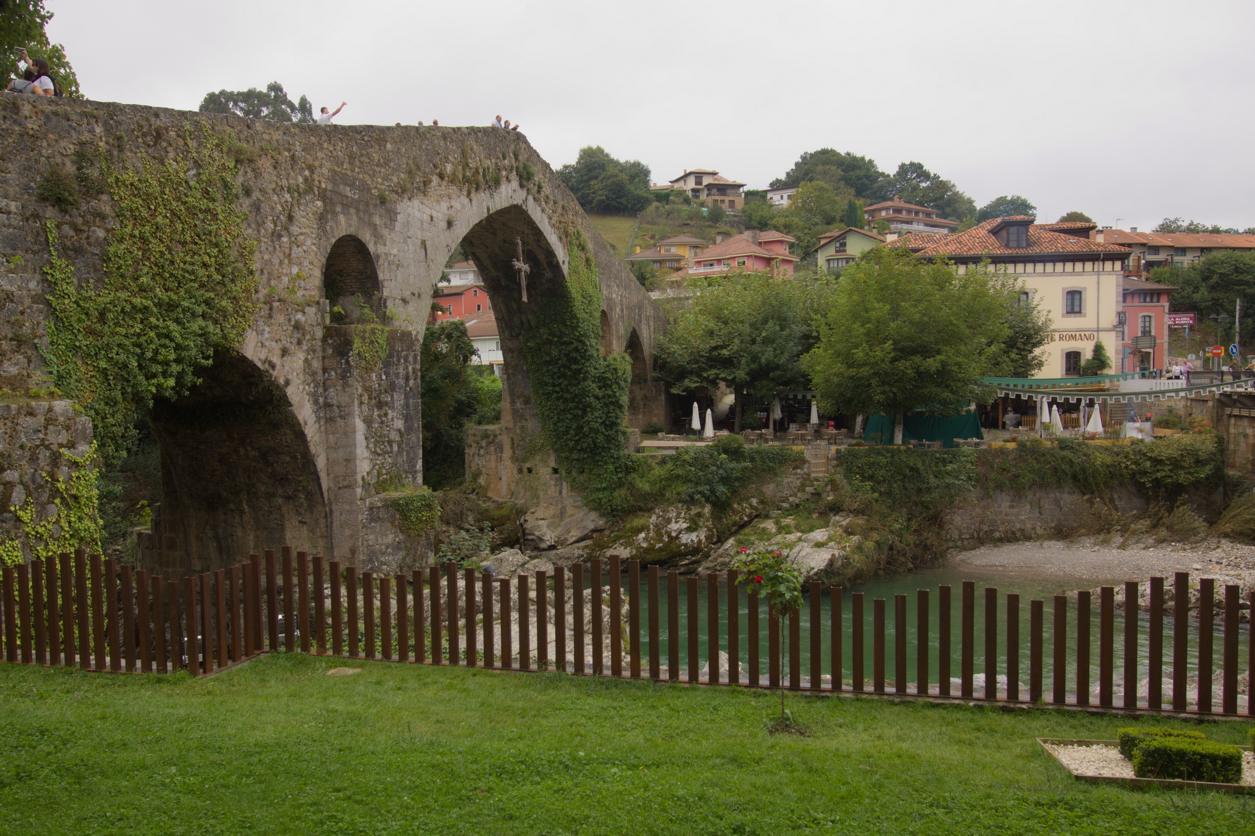 Da wir heute nur etwa 40 km zum Fahren hatten, machten wir einen Zwischenstopp in Cangas de Onis. Das Wetter war neblig, es hätte also keinen Sinn in die Berge zu fahren. Die Stadt liegt auf dem Zusammenfluss von Rio Guena und Rio Sella. Über Rio Sella steht eine alte römische Brücke, die zweifellos größte Touristenattraktion. Wir gingen durch die Fußgängerzone und über die Brücke und auf dem Rückweg haben wir in einem Restaurant gegessen. Interessant ist, dass hier überall erst um eins geöffnet wird.