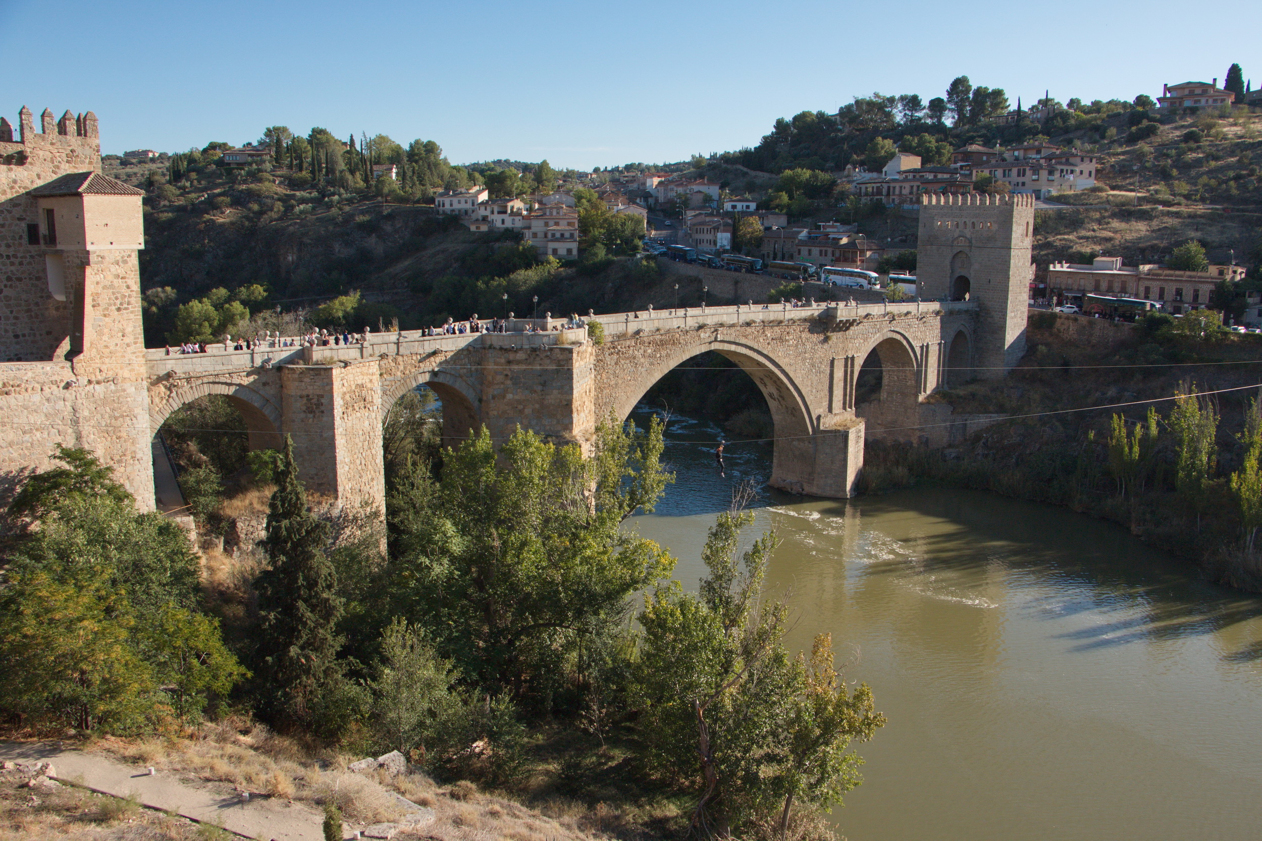 Bei der nächsten Bus Runde stiegen wir aus und gingen vorbei an der Kirche San Juan de Los Reyes über die Sant Martin Brücke. Ja, man konnte den Fluss auch auf einem Seil hängend überwinden. Wir wollten aber den Jungen nicht den Platz blockieren.