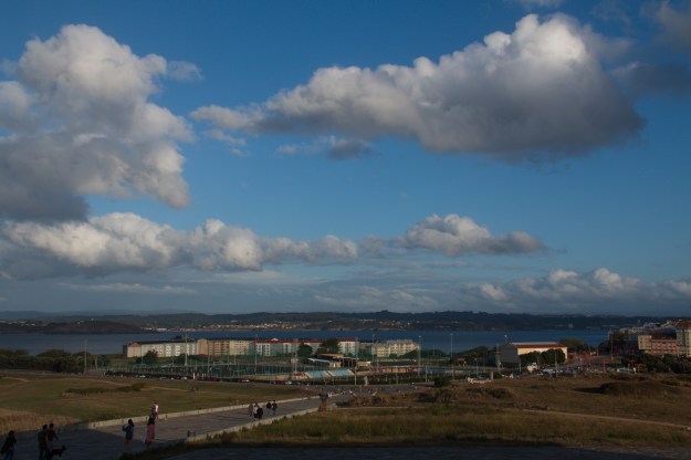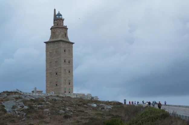 Als wir uns zum Aparthotel Attica21 As Galeras näherten, wurde das Wetter immer schöner, die Sonne schien herrlich. Wir haben uns aber entschieden, den Ausflug zum nur 11 km entfernten Torre de Hercules auf morgen zu verschieben, weil wir schon genug müde waren. Nach der Stärkung im Kaffeehaus fanden wir doch noch Kraft und fuhren dorthin. Und dann begann unser Glückspiel mit dem letzten Augenblick. Erstens haben wir Karten für den letzten Aufstieg um 19:30 gekauft. Als wir wieder herunterkamen, war der Turm schon zu. Zweitens versteckte sich die Sonne hinter die Wolken kaum eine Minute nachdem ich die Fotos gemacht habe. Und alle guten Sachen sind drei – wir haben den letzten Parkplatz vor dem Hotel erwischt. Eigentlich noch etwas: Die Hinfahrt morgen in der Früh wäre für die Fotos sinnlos, weil die Sonne über der Stadt stehen würde.