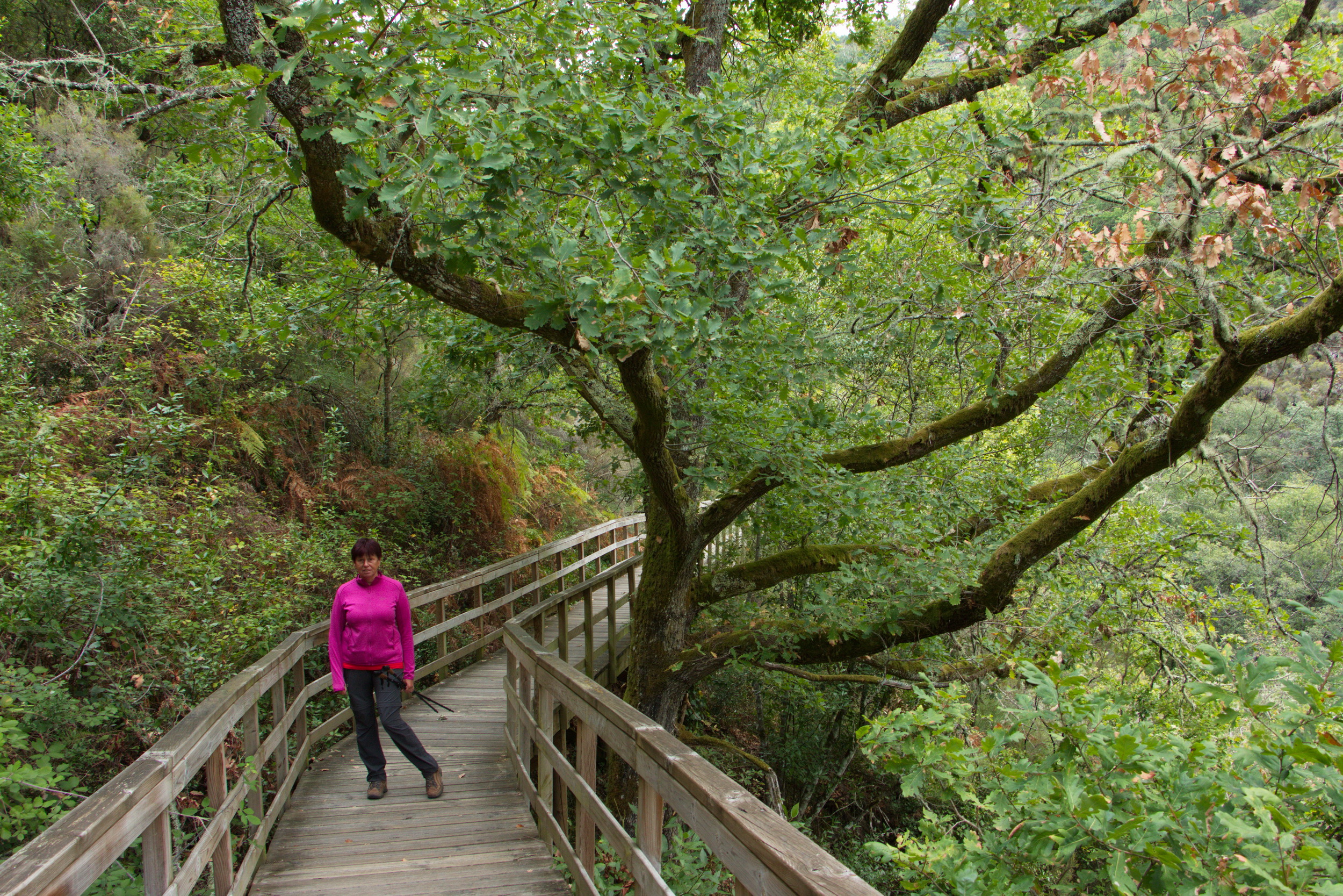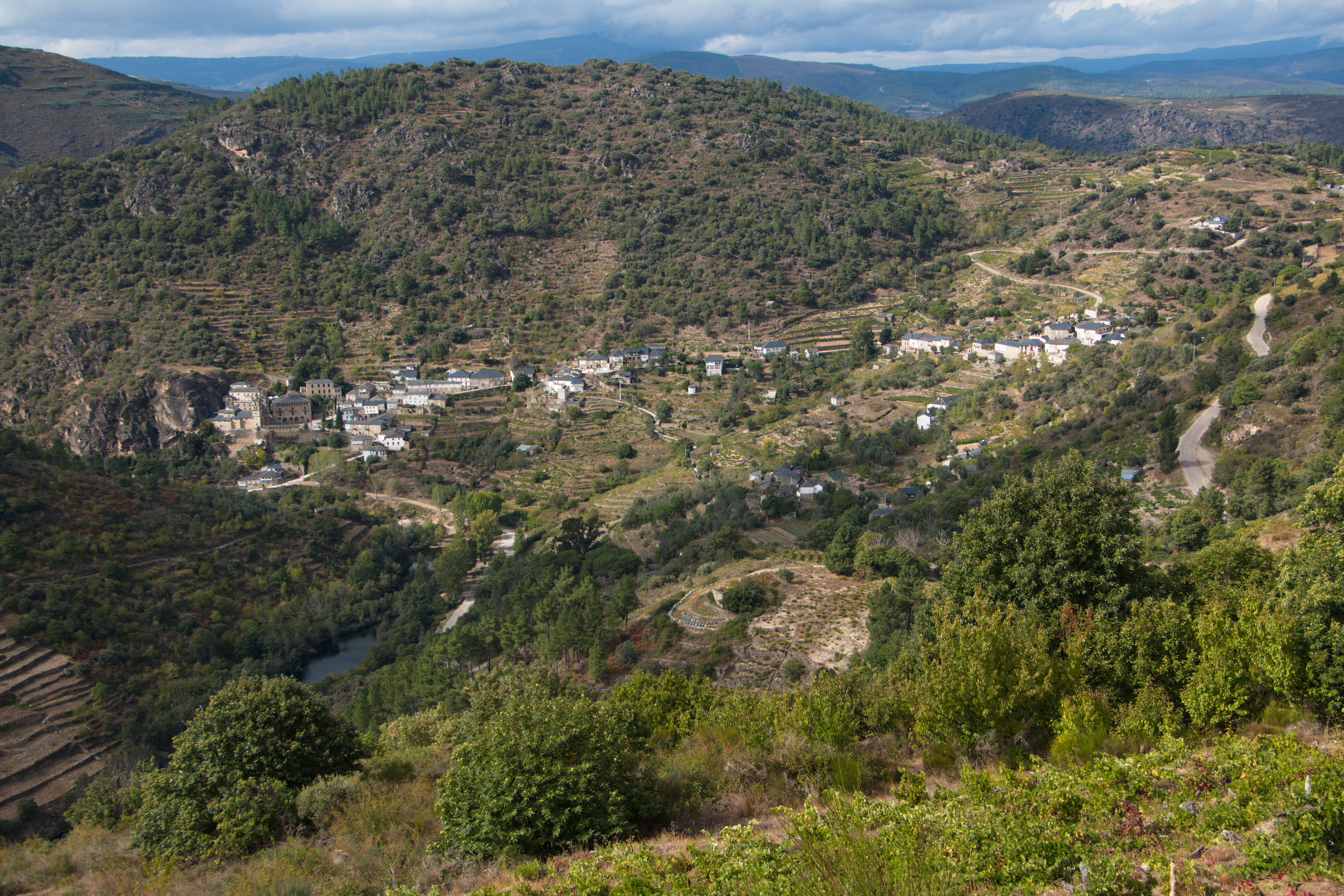 Wir fuhren zuerst zum Aussichtspunkt Mirador de Muronovo. Der Wegweiser schien auf etwas bergab führende Straße zu zeigen, so fuhren wir zuerst hin. Sie endete aber bald bei ein paar Steinhäusern. Die Fotos könnten noch schöner sein, wenn mich ein großer freilaufender Hund nicht unfreundlich angebellt hätte. An den Windrädern vorbei kamen wir dann doch zu dem Mirador. Die Aussichten waren herrlich, etwas mehr Sonne würde nicht schaden, es regnete mindestens nicht.